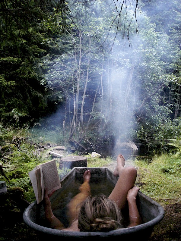 As much as I like to get dirty, I like to take baths. After a long day walking the forest, skiing, chopping wood, reading or working at my little brokebackmountain cabin in the Oslo woods, I have an outdoor bathtub that I heat from underneath with fire. This is just a normal bathtub that I placed above a natural hole in the forest floor by the creek. It is highly recommended.